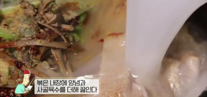곱창, 양, 벌집양등 내장탕에 내장부위가 골고루 들어있다.