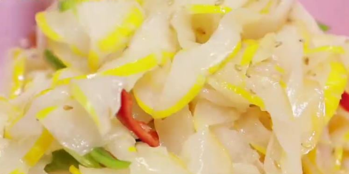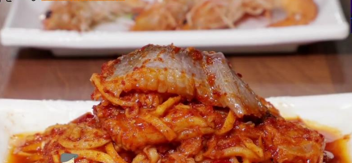 간자미는 가오리의 한 종류로 홍어와 달리 삭혀 먹지 않는다. 새콤달콤 무쳐서 나온다. 남녀노소 다 좋아한다.